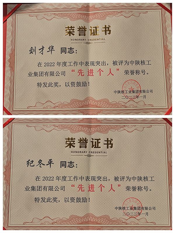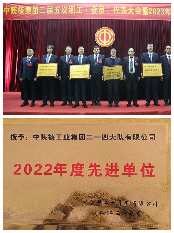 1月18日,中陜核集團(tuán)二屆五次職工(會員)代表大會暨2023年工作會議在西安召開會議對在2022年度工作中做出突出貢獻(xiàn)的先進(jìn)集體和個人進(jìn)行了表彰二一四大隊有限公司榮獲2022年度集團(tuán)先進(jìn)單位,劉才華、紀(jì)冬平兩位同志榮獲集團(tuán)“先進(jìn)個人”榮譽(yù)稱號。公司董事長鄧盛波代表公司上臺領(lǐng)獎,并簽訂了2023年度公司負(fù)責(zé)人經(jīng)營目標(biāo)責(zé)任書。