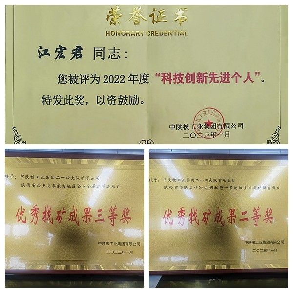 214日,集團召開的第五屆科技大會及地質礦產工作會議對在2022年度工作中做出突出貢獻的先進地質項目和科技創新個人進行了表彰,公司寧陜楊泗廟項目榮獲集團優秀找礦成果二等獎、西鄉李家溝項目榮獲集團優秀找礦成果三等獎、江宏君博士榮獲“科技創新先進個人”。公司黨委委員、總工程師王朋參加了本次會議,并代表公司就關于2022地質找礦工作經驗和2023年的工作部署進行了匯報交流。