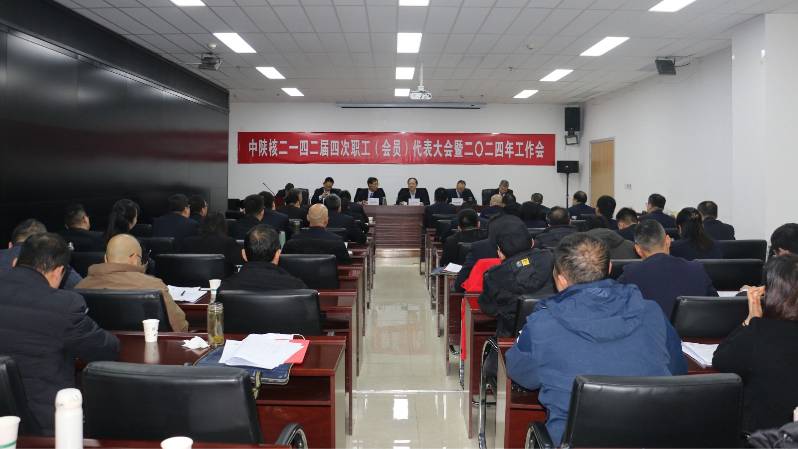 2024年130日,中陜核二一四大隊召開了二屆四次職工(會員)代表大會暨2024年工作會。中陜核工業集團有限公司黨委書記、董事長朱華平,黨委工作部部長金衛平受邀出席,到會指導。來自公司機關、各基層單位的正式職工代表、列席代表以及外部董事等共計60余人參加了大會。
