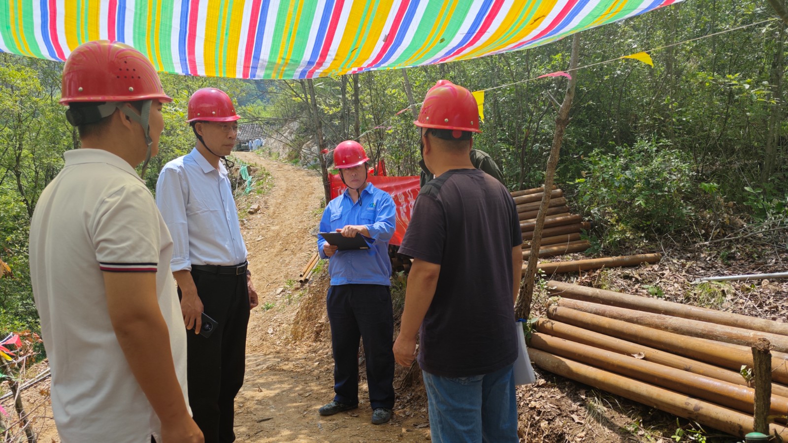 按照公司領導班子成員“四下基層”工作安排,522日,公司黨委書記、董事長鄧盛波前往二一四大隊黃泥坪項目指導檢查工作,公司安全環保部部長董連志、行政部部長李陽陪同檢查。