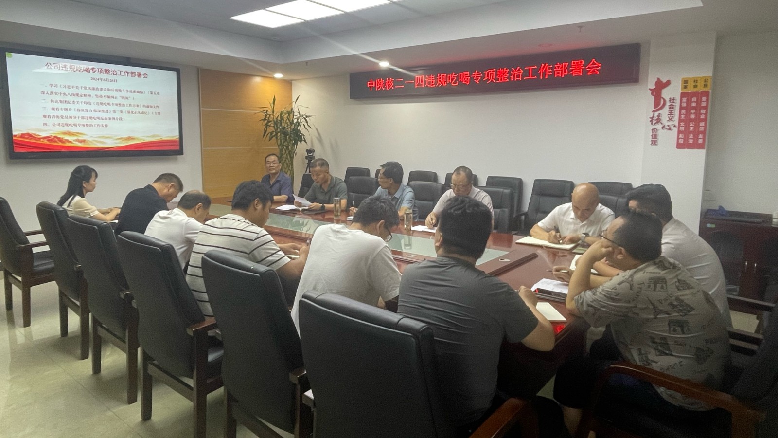 為深入貫徹落實中央紀委、省紀委三次全會精神,堅決剎住違規(guī)吃喝歪風,6月26日,公司紀委召開違規(guī)吃喝專項整治工作部署會。會議由公司紀委書記楊昭主持,公司領導班子、中層干部參加了會議。