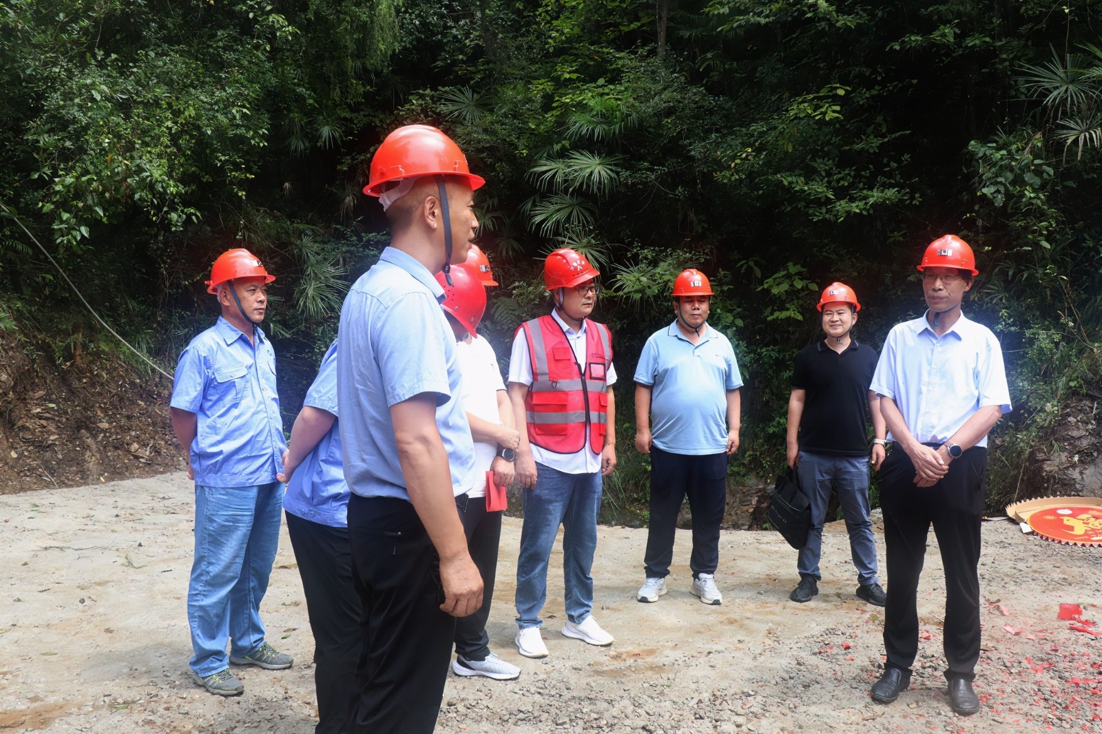 在施工現(xiàn)場(chǎng),項(xiàng)目負(fù)責(zé)人就硐探工程的設(shè)計(jì)方案、施工組織、進(jìn)度安排等進(jìn)行了詳細(xì)的匯報(bào)。鄧盛波在聽取匯報(bào)后,首先,對(duì)項(xiàng)目組全體工作人員前期的付出表示了充分的肯定,對(duì)硐探工程施工方興略公司的密切配合、對(duì)寧強(qiáng)縣、陽(yáng)平關(guān)鎮(zhèn)、張家河村三級(jí)政府的鼎力支持和幫助表示感謝。隨后,鄧盛波對(duì)硐探工程的施工提出了三點(diǎn)要求:一是要高規(guī)格強(qiáng)化安全生產(chǎn),提升安全管理等級(jí),現(xiàn)場(chǎng)要依章依規(guī),規(guī)范操作;二是要高標(biāo)準(zhǔn)把控工程質(zhì)量,硐探工程施工質(zhì)量和地質(zhì)編錄質(zhì)量要全部達(dá)標(biāo);三是要高效率地組織施工,二一四大隊(duì)、興略公司、民爆公司三方要通力協(xié)作、有序銜接,如期圓滿完成施工任務(wù)。