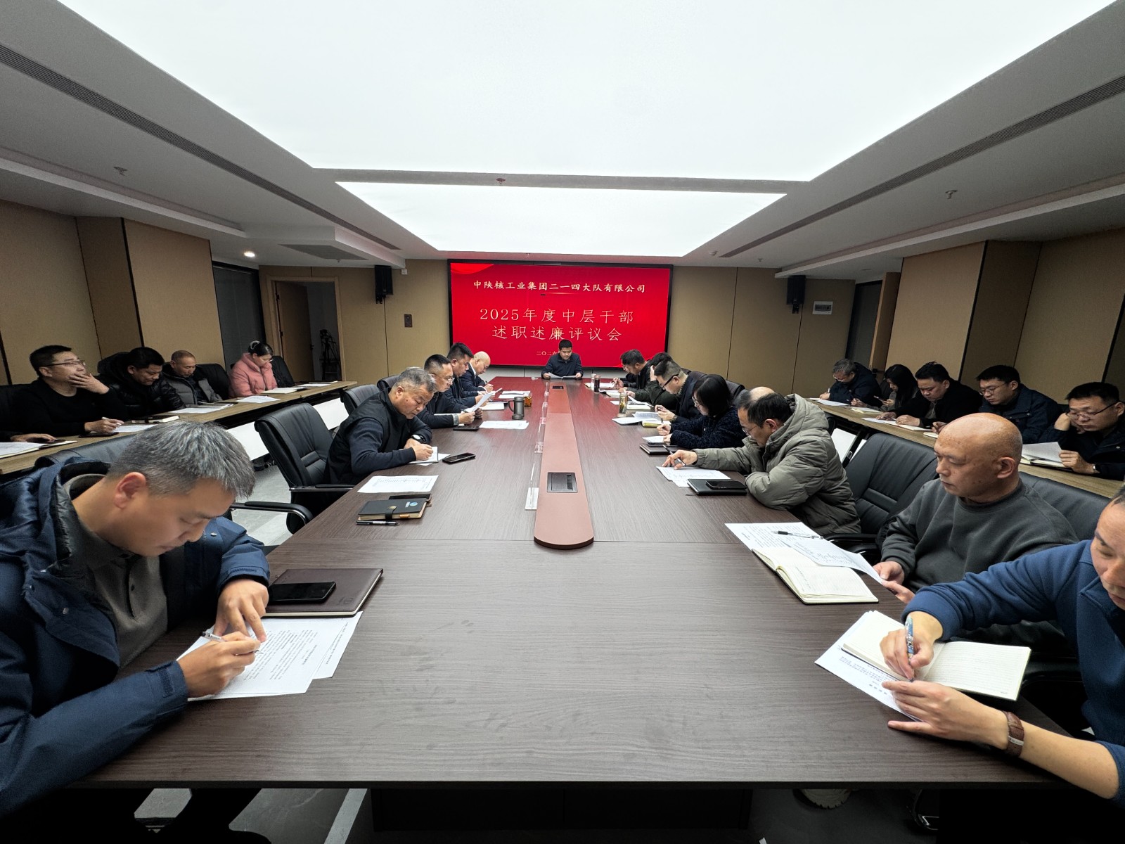 2026年1月7日,中陜核二一四隊(duì)組織召開(kāi)了2025年度中層干部述職述廉評(píng)議會(huì)。公司黨委書記、董事長(zhǎng)付星出席會(huì)議并講話,黨委委員、總經(jīng)理王朋主持會(huì)議,公司領(lǐng)導(dǎo)班子、中層干部、職工代表30余人參加會(huì)議。