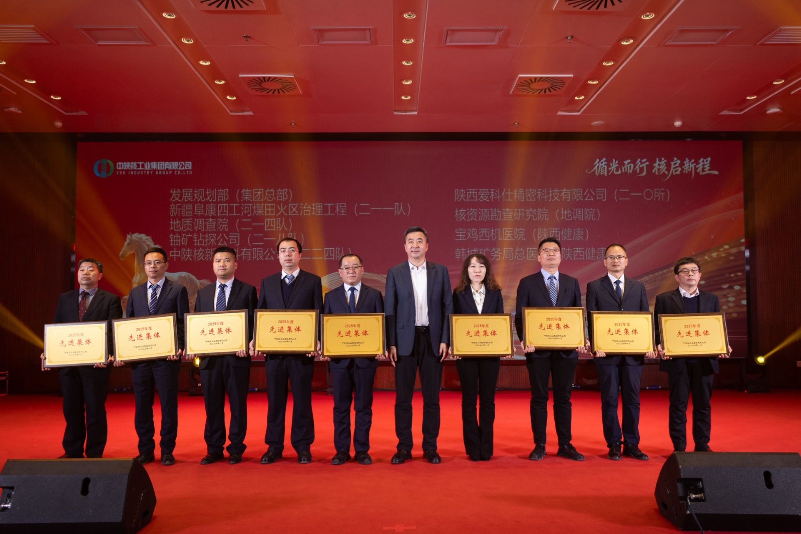 一元復(fù)始啟新篇,捷報(bào)頻傳鼓干勁。1月20日,中陜核工業(yè)集團(tuán)三屆三次會(huì)員(職工)代表大會(huì)暨2026年工作會(huì)隆重召開(kāi),會(huì)上對(duì)過(guò)去一年在集團(tuán)發(fā)展中表現(xiàn)突出的先進(jìn)集體與個(gè)人進(jìn)行了表彰。中陜核二一四隊(duì)?wèi){借扎實(shí)的工作成效與亮眼的創(chuàng)新突破,斬獲多項(xiàng)榮譽(yù),盡顯核地質(zhì)隊(duì)伍的硬核實(shí)力與奮進(jìn)姿態(tài)。