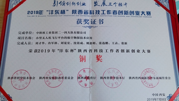 公司航空物探項目獲2019年“灃東杯”陜西省科技工作者創新創業大賽銅獎
