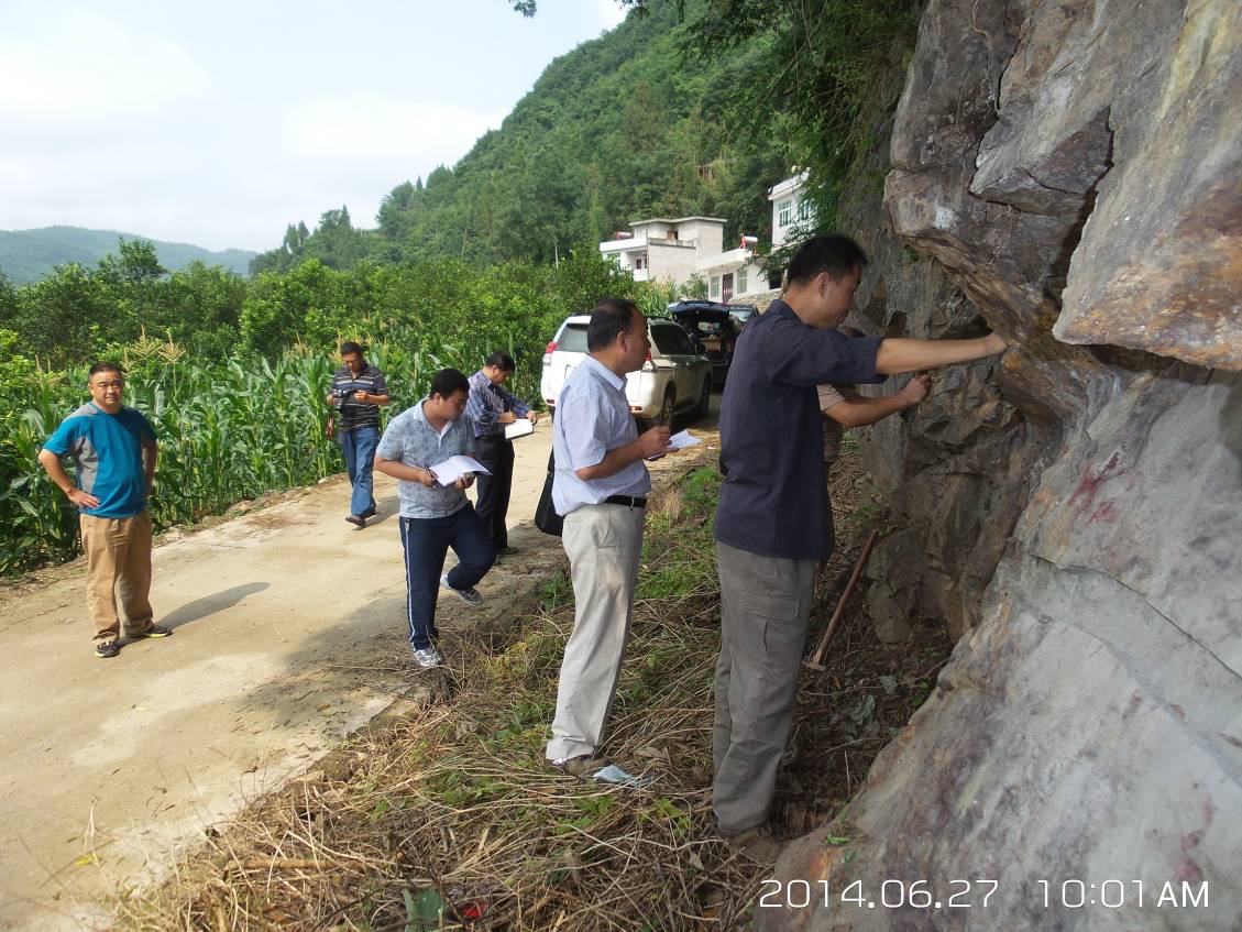 2014年6月26-27日,省基金辦專家張銀龍、張啟、王善勛、李耕(中陜核集團副總工程師)、宋工(安康市國土局工程師)一行,在214大隊副大隊長金衛平、214大隊副總工程師兼地調院院長王義忠陪同下,對214大隊地調院承擔的“陜西省紫陽縣漢王城地區金多金屬礦普查” 項目進行了野外驗收。
